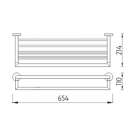 Police na ručníky kombinovaná s madlem pro zavěšení ručníků.