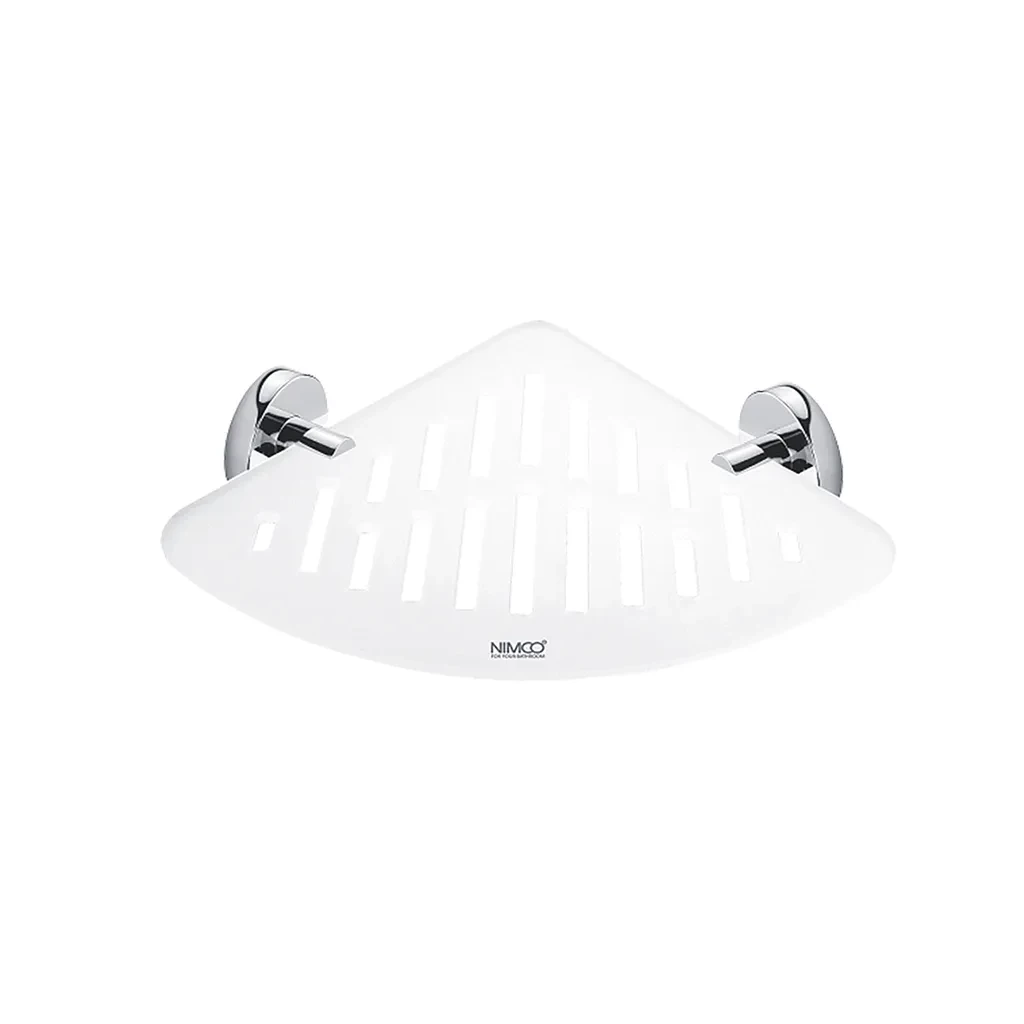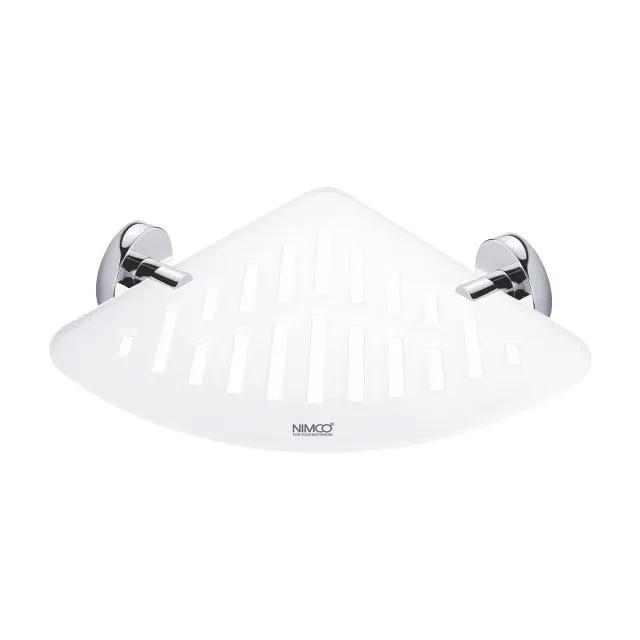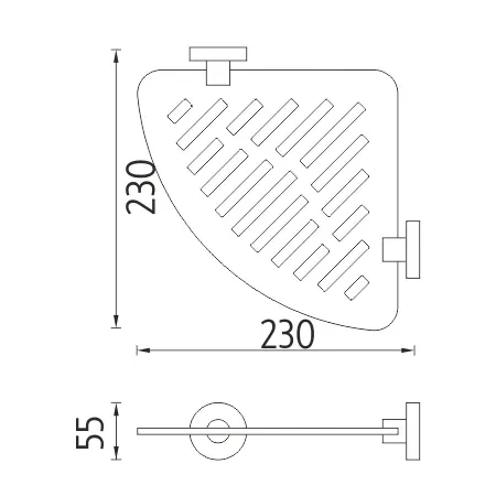 Rohová police s frézováním. Materiál plexiglass. 21x21 cm.