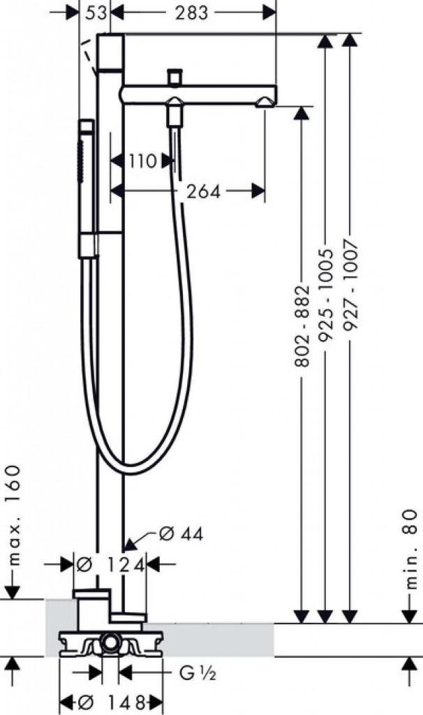 - připojení na základní těleso pro vanovou baterii volně stojící na podlaze (není součástí dodávky)