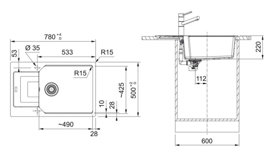 Kuchyňský dřez UBG 611-78 BB, odkapávací plocha reverzibilní