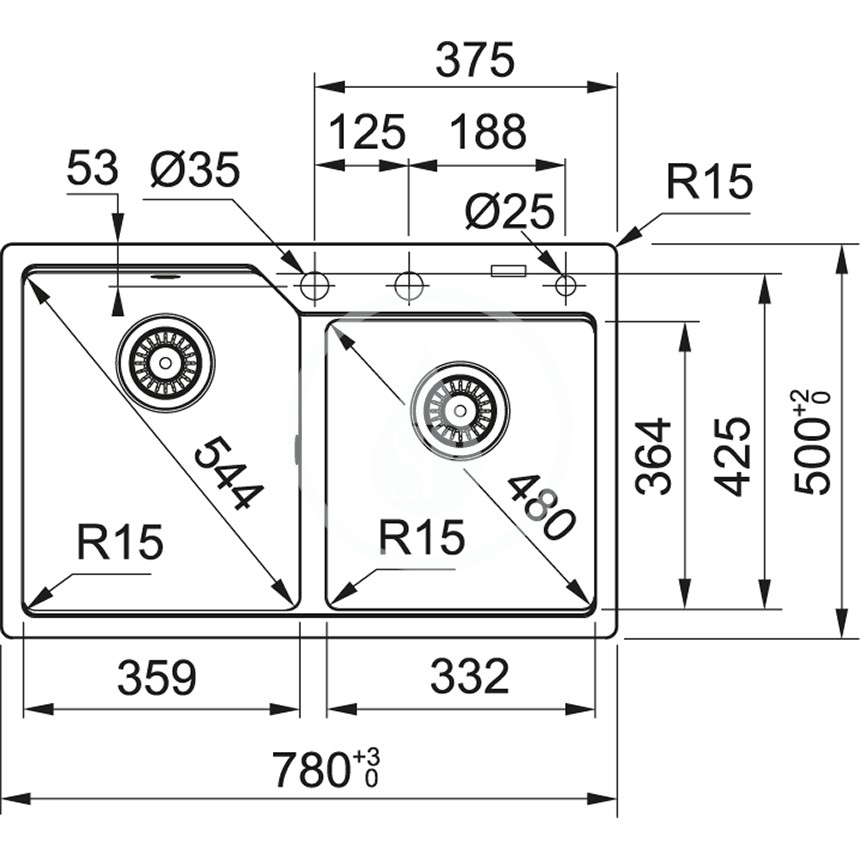 Kuchyňský dvoudřez UBG 620-78, bez odkapávací plochy