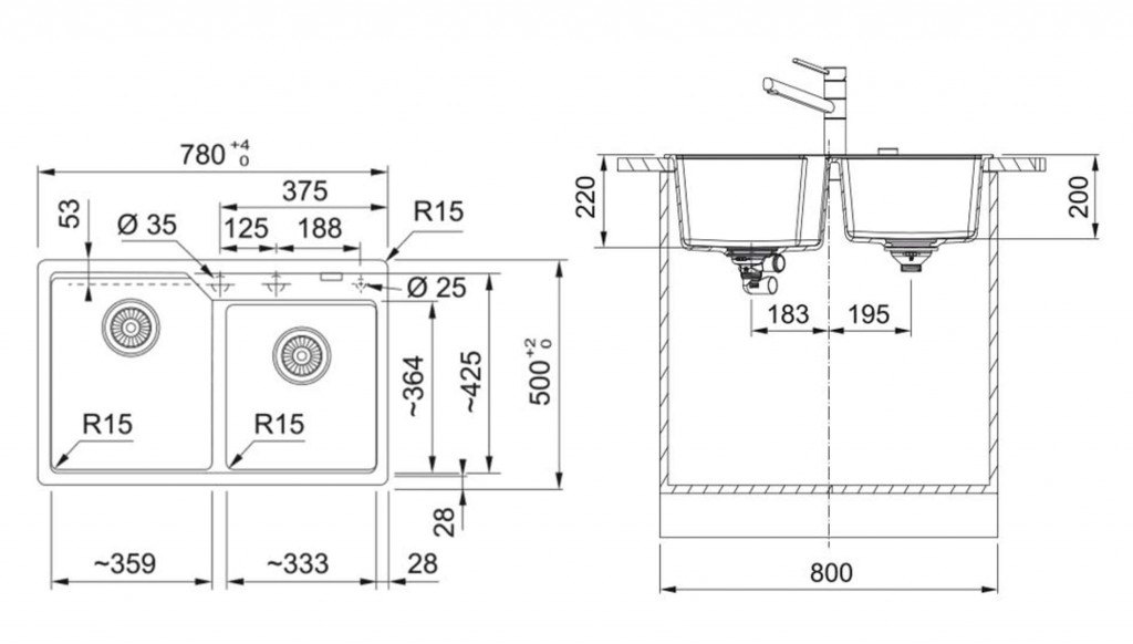 Kuchyňský dvoudřez UBG 620-78, bez odkapávací plochy