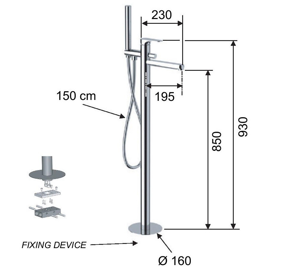 Dodáváno včetně příslušenství - sprchová hlavice s hadicí. Stojánková vanová baterie pro moderní koupelny.