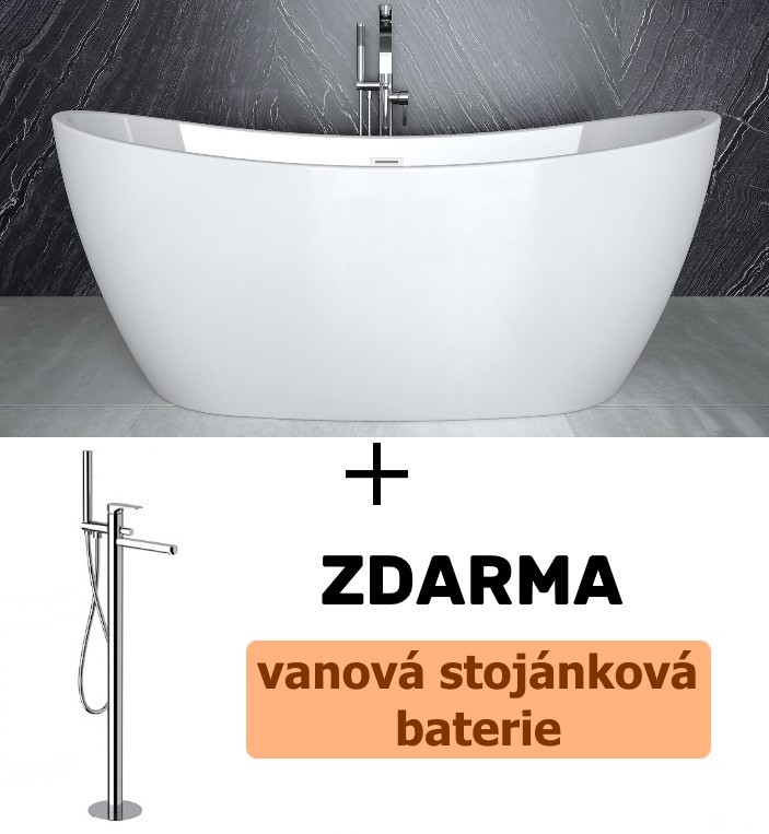 Rozměr volně stojící vany:- 170 × 80 cm, objem 250 l