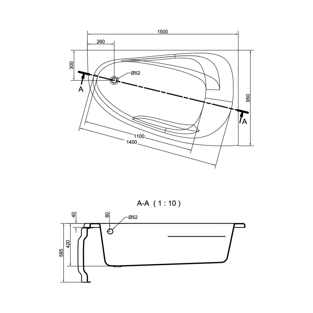 Asymetrická akrylátová vana JOANNA NEW pravá je dodávaná včetně nastavitelných nožiček.