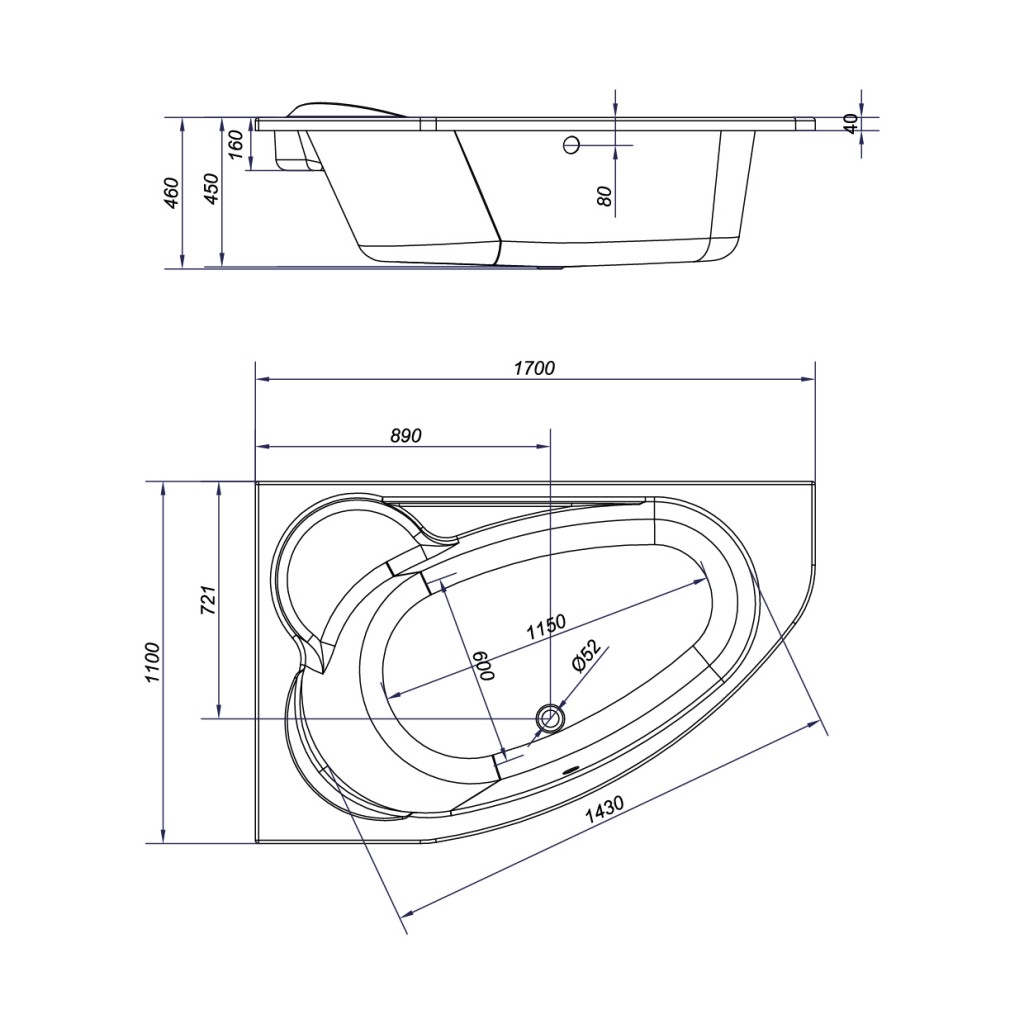 | Charakter | asymetrická vana |