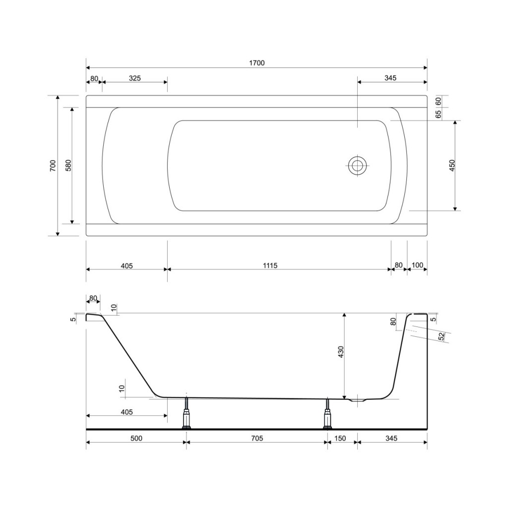 Moderní akrylátová vana KORAT je dodávaná včetně nastavitelných nožiček.