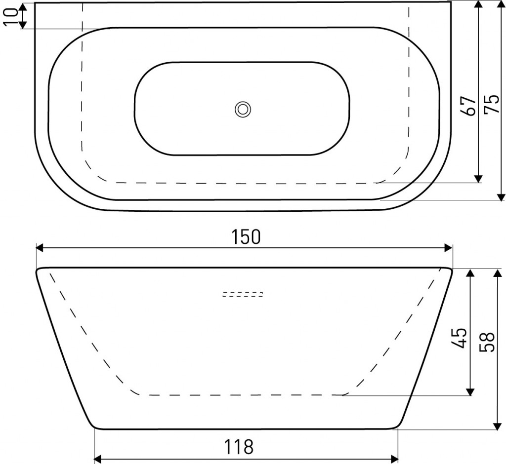 - Šířka horní části vany – 55 cm