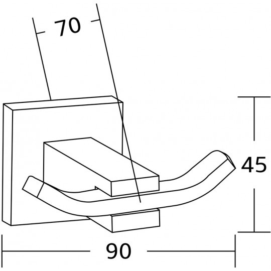 Kovový dvojitý háček VANE od výrobce MEXEN je určen k instalaci vrtaného spoje. Háček je široký 90 mm, vysoký 45 mm a hloubka od stěny je 70 mm