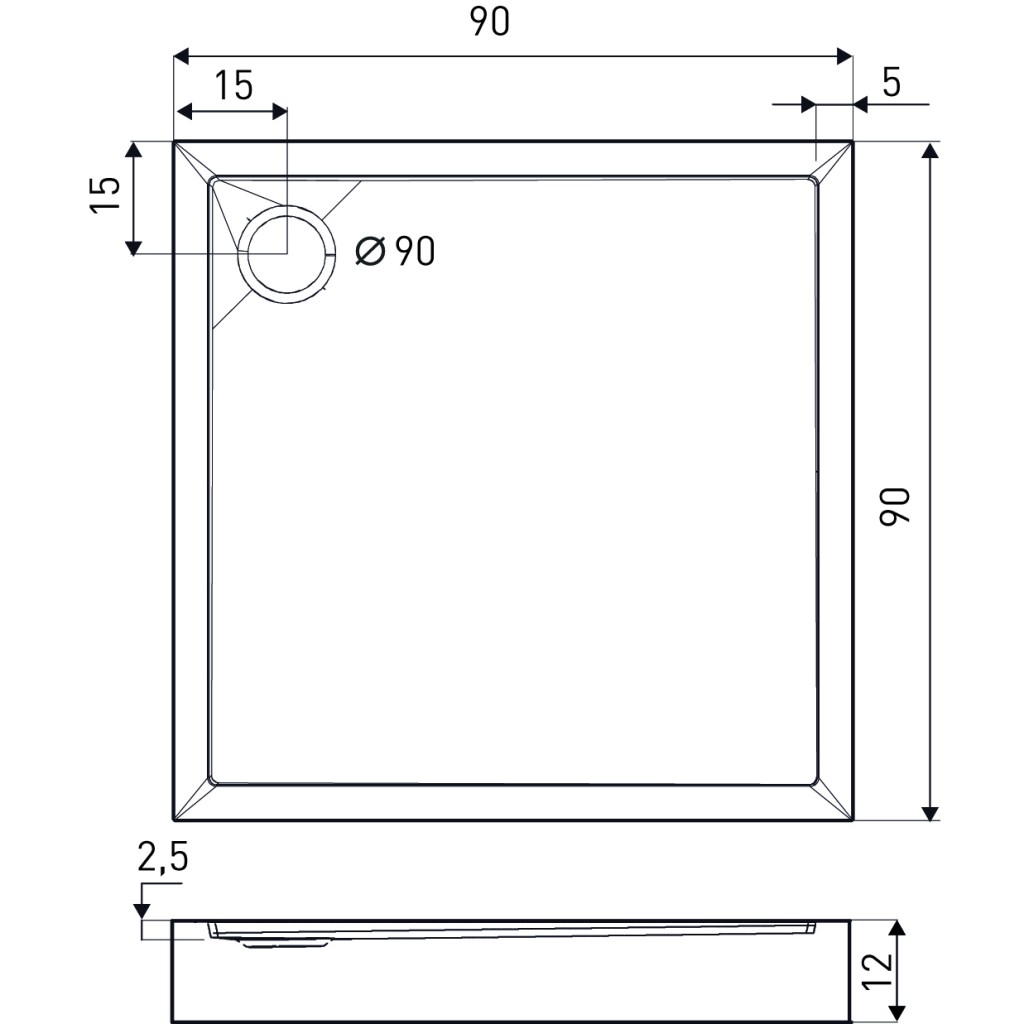 Čtvercová sprchová vanička David, velikost 90 cm, černá. Má antibakteriální povrch a velmi snadno se udržuje v čistotě. Díky integrovanému pouzdru je instalace sprchové vaničky velmi rychlá a snadná. Černé sprchové vaničky jsou současným trendem v designu koupelen. Čtvercová sprchová vanička David má povrch s kamennou strukturou, která vaši koupelnu rozhodně ozdobí! Tato struktura navíc poskytuje protiskluzové vlastnosti.
