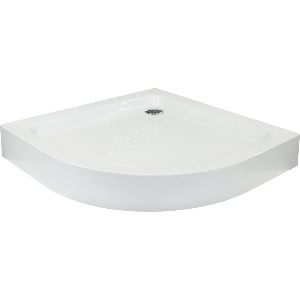 Čtvrtkruhová sprchová vanička 80 × 80 s poloměrem R 55 a výškou 15 cm.