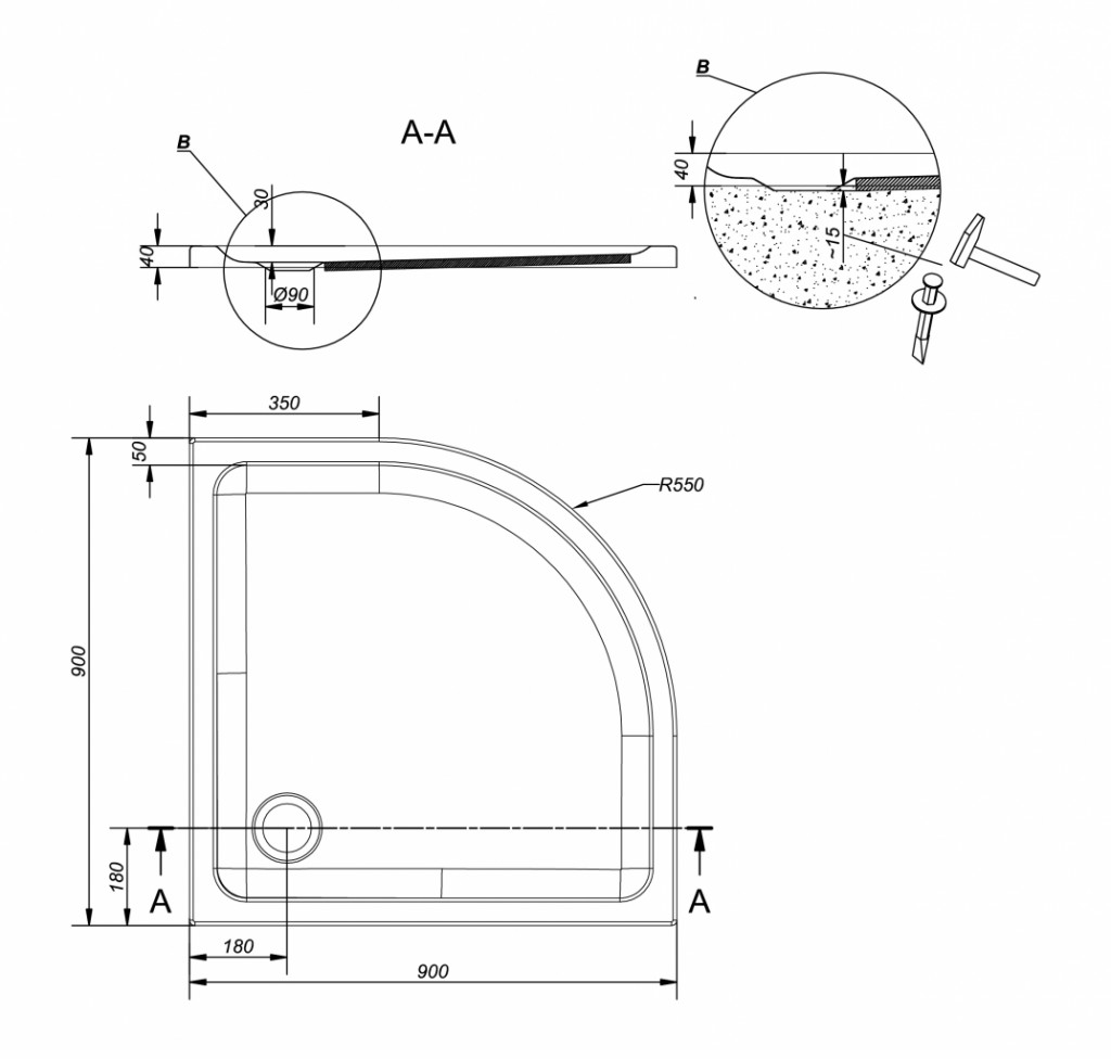 Sprchová vanička TAKO 90x4, čtvrtkruh CW (S204-002)