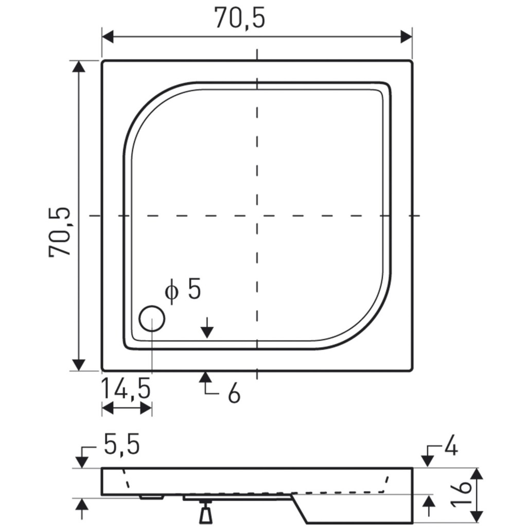 Univerzální čtvercová sprchová vanička Victor 70 × 70 cm