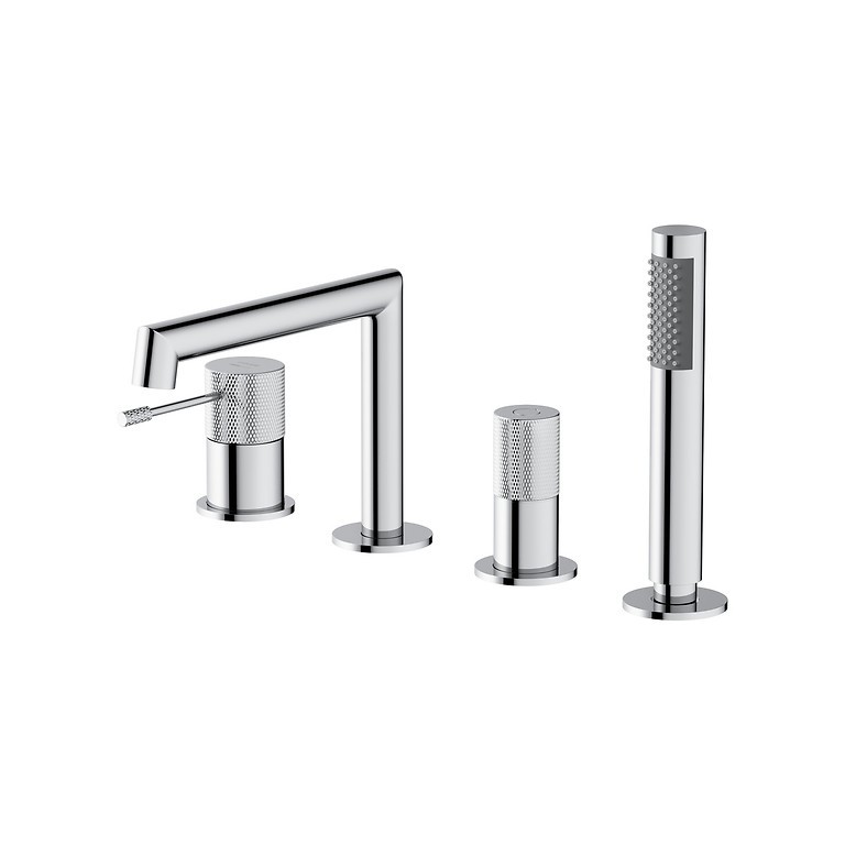 Víceotvorová vanová baterie z kolekce Zen Vyrobeno z mosazi Perlátor Cersanit Air Mosazná sprchová hlavice o průměru 2,8 cm Vroubkované rukojeti PVC hadice o délce 150 cm Instalace Easy Fix Spolehlivá keramická kartuše
