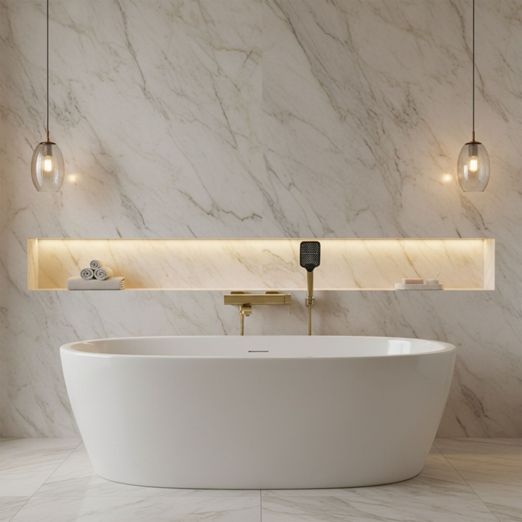 Vytvořte si v koupelně relaxační zónu s jedinečným stylem – zvolte nástěnnou vanovou baterii Rea Arlo v provedení kartáčované zlato. Tento model je esencí moderního designu: geometrické tělo a ploché plochy dokonale ladí s umyvadlovou armaturou ze stejné série. Kompletní sprchový set zajišťuje funkčnost i vizuální jednotu interiéru.Moderní design – pro sérii Arlo typická plochá výpusť a čisté linie těla dodávají baterii minimalistický a elegantní vzhled.Barva kartáčované zlato – ušlechtilá matná povrchová úprava, která je efektní i praktická, protože pomáhá maskovat otisky prstů.Kompletní sprchový set – součástí je baterie, hadice a stylová obdélníková ruční sprcha s nástěnným držákem, vše jako sladěný celek.Ruční sprcha se systémem Anti-Calc – moderní sprcha se silikonovými tryskami, které brání usazování vodního kamene a usnadňují čištění.Keramická kartuše – „srdce“ baterie, které zajišťuje plynulou a přesnou regulaci proudu i teploty po dlouhou dobu.Perlátor – integrovaná koncovka výtoku provzdušňuje vodu, takže je proud měkčí a úspornější.Vanová baterie Rea Arlo ve zlaté barvě je skvělou volbou pro ty, kteří chtějí spojit estetiku s komfortem používání. Její geometrická forma a teplý zlatý odstín tvoří výrazný akcent v koupelně a perfektně ladí s moderními obklady a keramikou. Pevné provedení a důraz na detail zaručují spokojenost při každé koupeli.