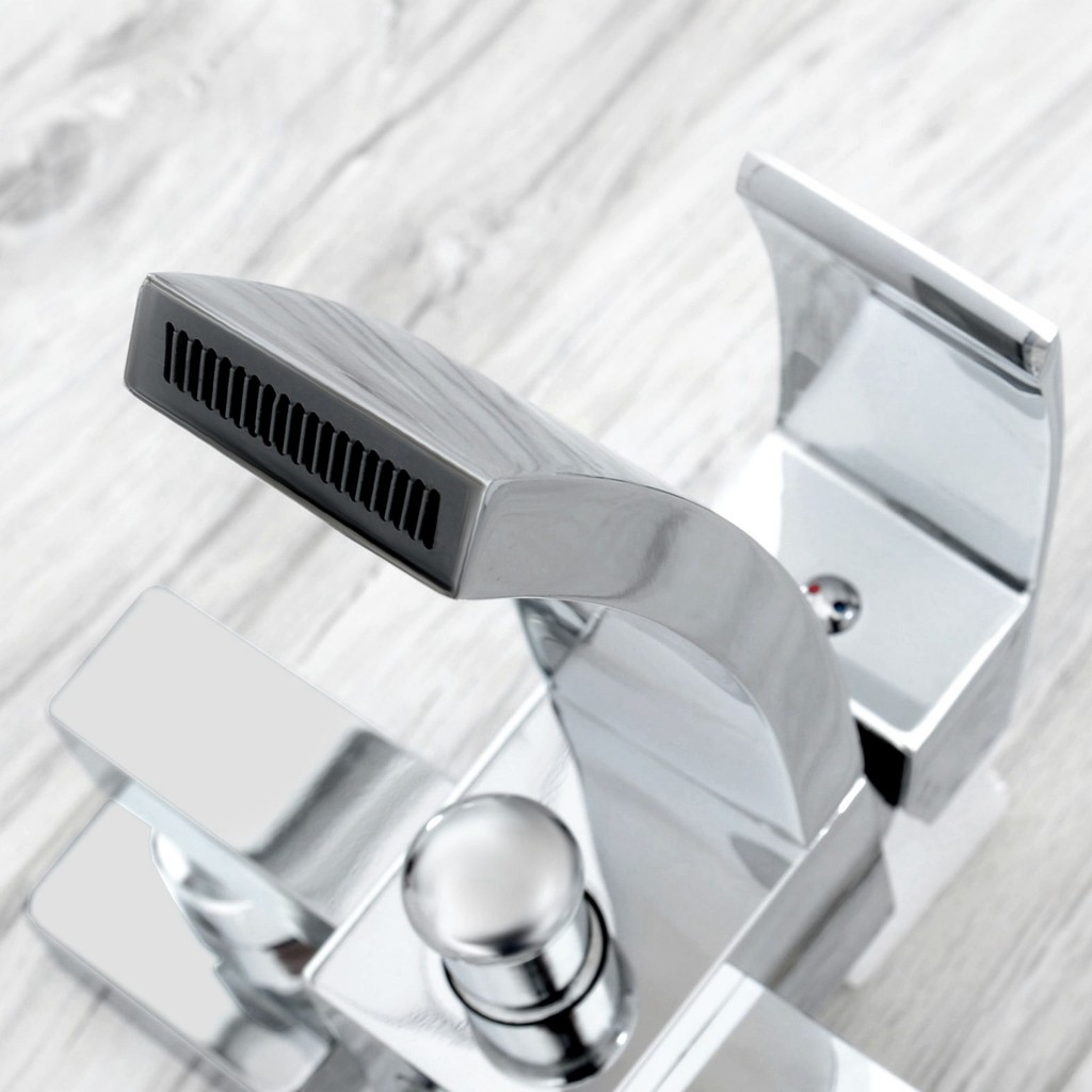 Součástí vanové baterie je klasický kohoutek s roztečí 15 cm. Překvapí vás velmi efektní plochý proud vody, který vypadá jako malý domácí vodopád.
