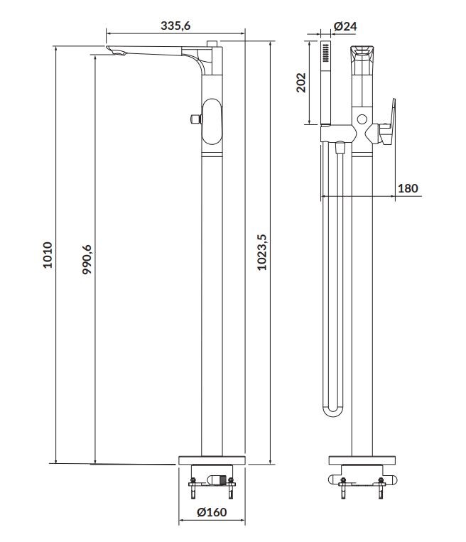 Volně stojící vanová/ sprchová baterie kolekce CREA je určená pro montáž do podlahy. Součástí baterie je ruční sprcha o průměru 2,4 cm a sprchová hadice z PVC o délce 150 cm.