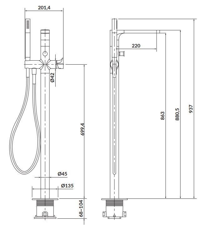 Minimalistický a moderní styl baterie INVERTO se bude skvěle hodit do koupelen takového charakteru. Volně stojící jednopáková vanová/ sprchová baterie z kolekce INVERTO je vybavena ekologickým perlátorem Cersanit Air a 35mm keramickou kartuší, která umožňuje plynulé nastavení proudu vody po celou dobu její životnosti. Sada obsahuje 1funkční ruční sprchy o průměru 2,4 cm se silikonovou úpravou Cersanit EasyCLEAN a sprchovou hadici z PVC 150 cm (certifikát WRAS). Sada obsahuje přídavnou rukojeť s modernistickou formou ve zlaté barvě.