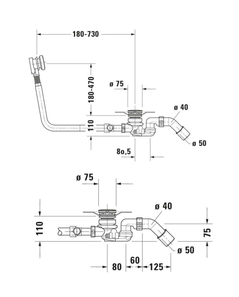Odtoková a přepadová souprava Quadroval s napouštěním