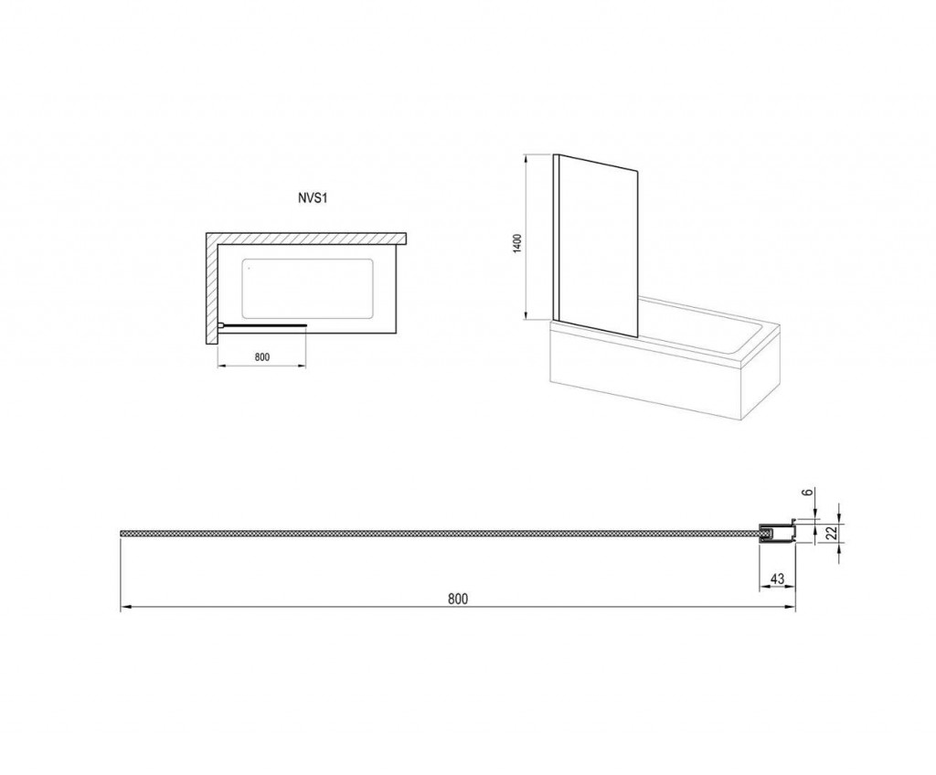 - zástěna se skládá ze svislého ustavovacího profilu a jednoho pevného dílu, s kterým nelze pohybovat