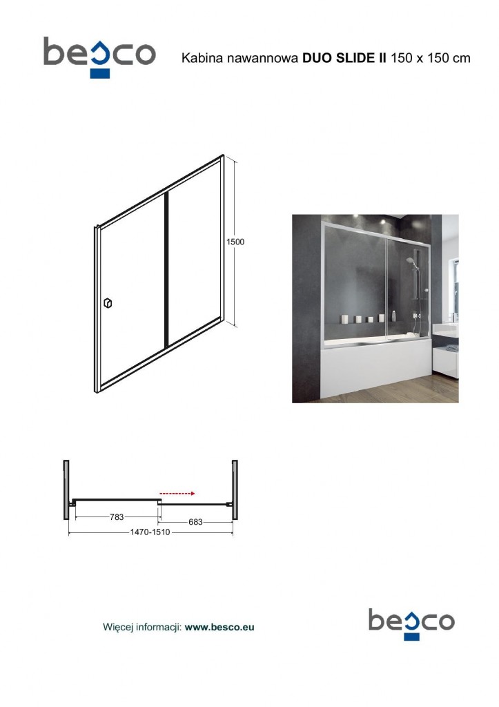 Luxusní vanová zástěna DUO SLIDE II dokonale chrání Vaší koupelnu při koupání i sprchování. Je dodávána v provedení s 6 mm bezpečnostním sklem a nabízí jednu posuvnou stranu.
