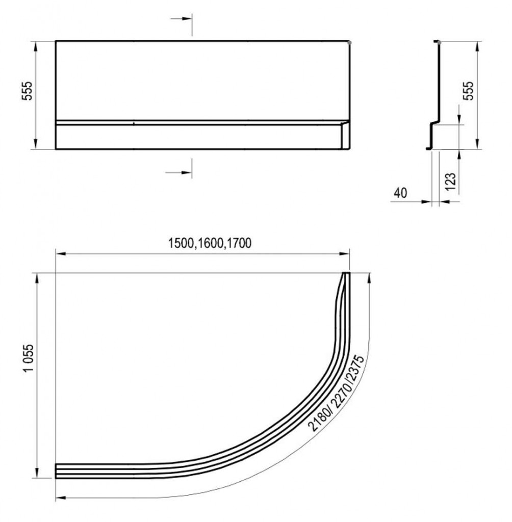 Čelní krycí panel A 170 L, pro vany Rosa II