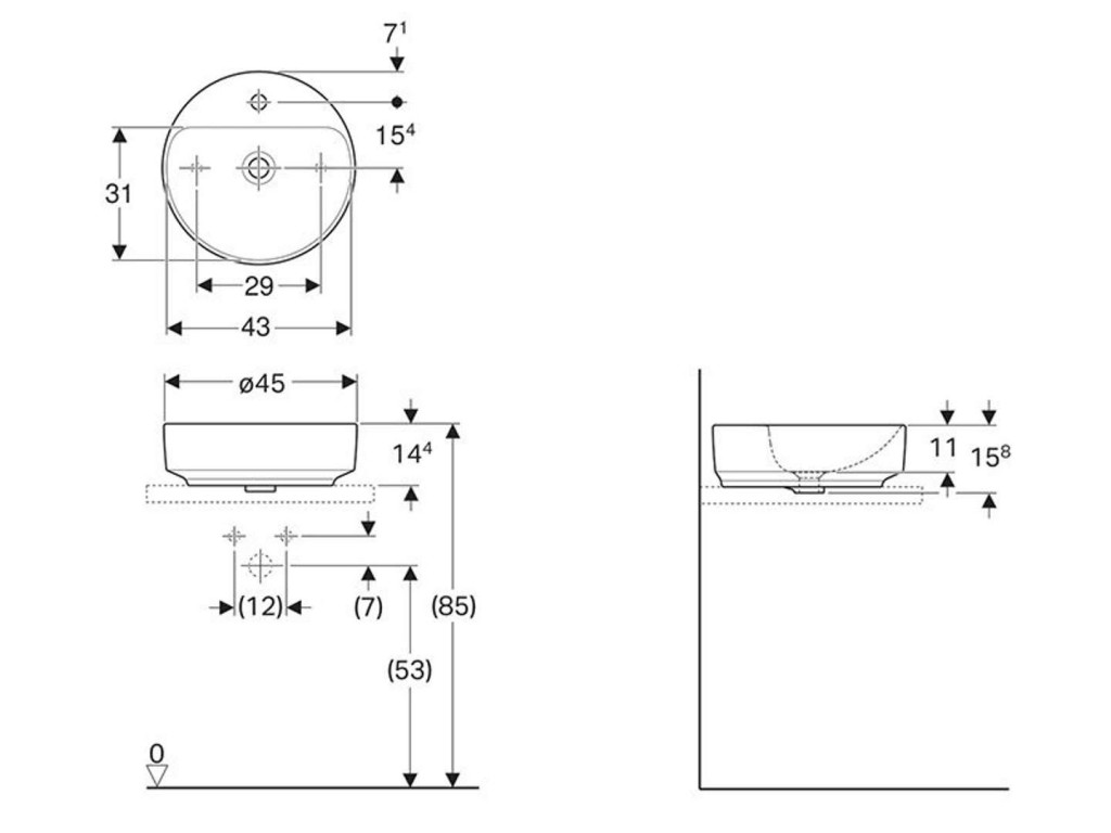 Umyvadlo k postavení na skříňku nebo desku