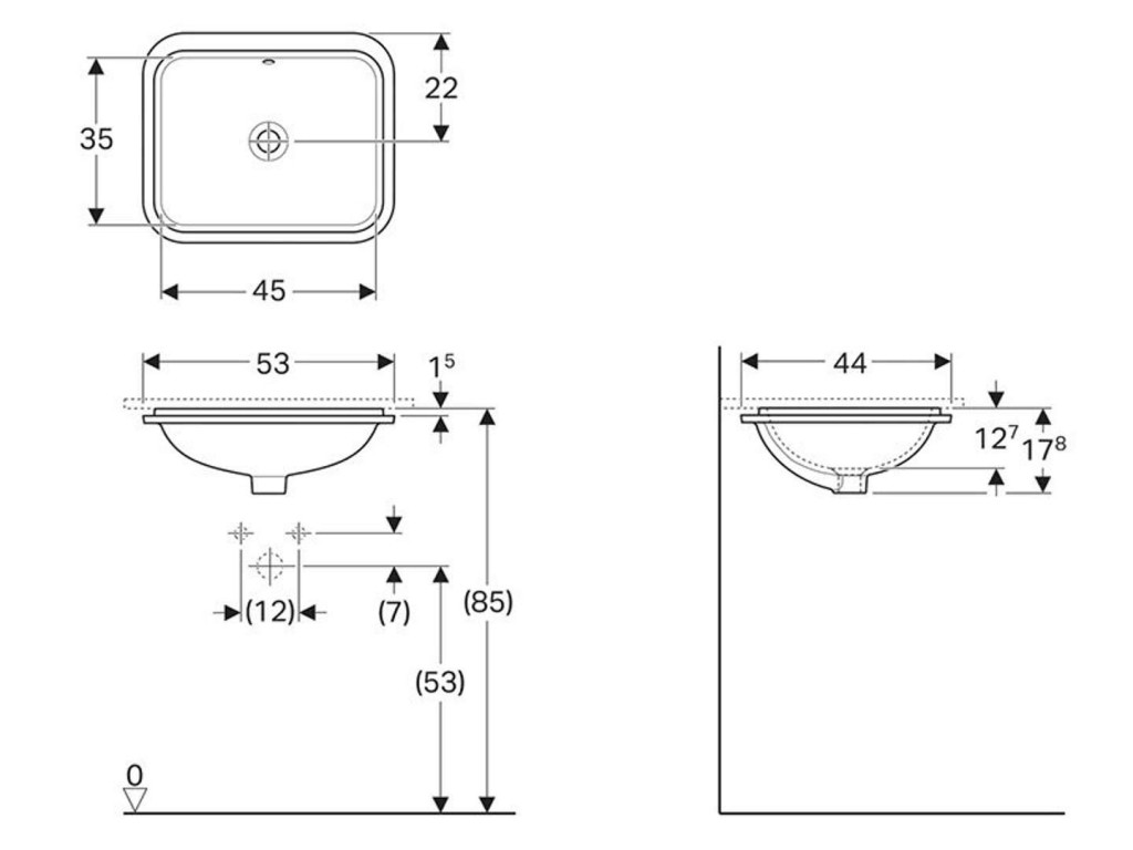 Umyvadlo pro montáž zespodu