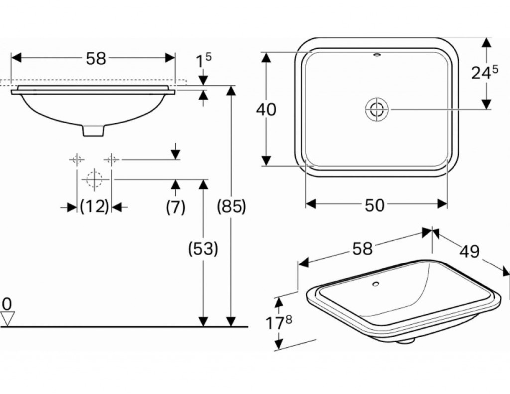 Umyvadlo pro montáž zespodu