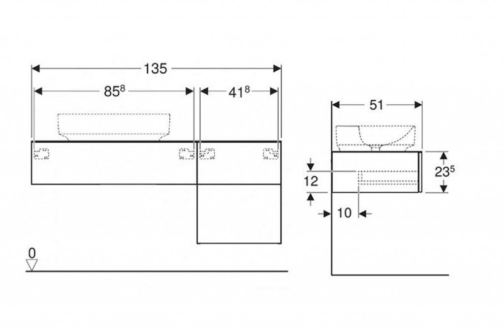 - umyvadlo je možné namontovat vlevo nebo vpravo
