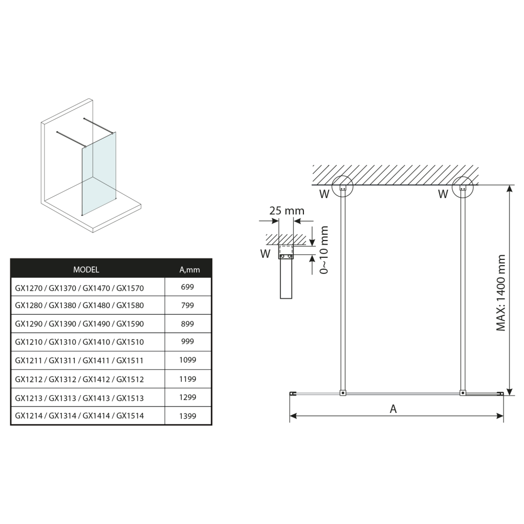- Stěnové profily s tolerancí 15 mm usnadňují stabilní montáž zástěn, instalace je možná na dlažbu nebo sprchovou vaničku