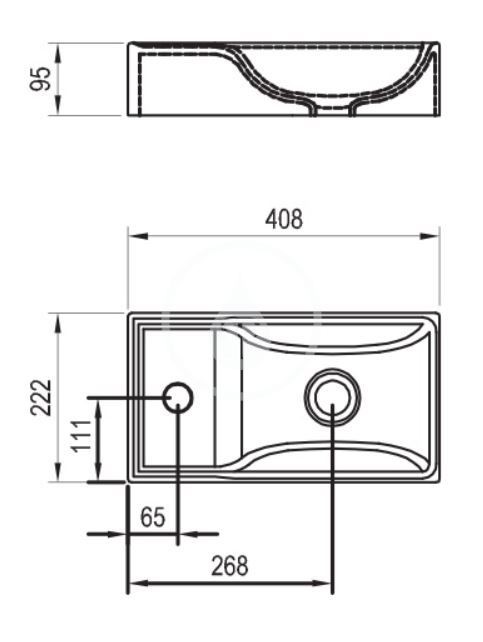 Umyvadlová výpusť, baterie a skříňka SD Veda 400 nejsou součástí balení (viz. související výrobky)