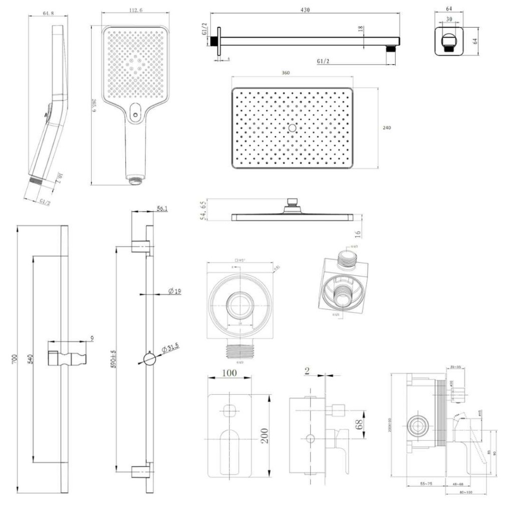 horní sprchu 360 x 240 mm se sprchovým ramenem 430 mm
