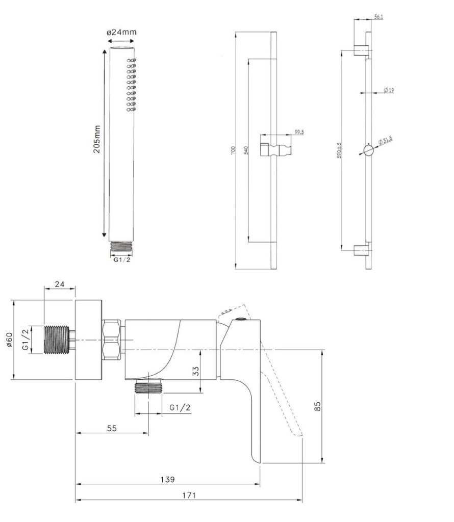 Sprchovou tyč 700 mm
