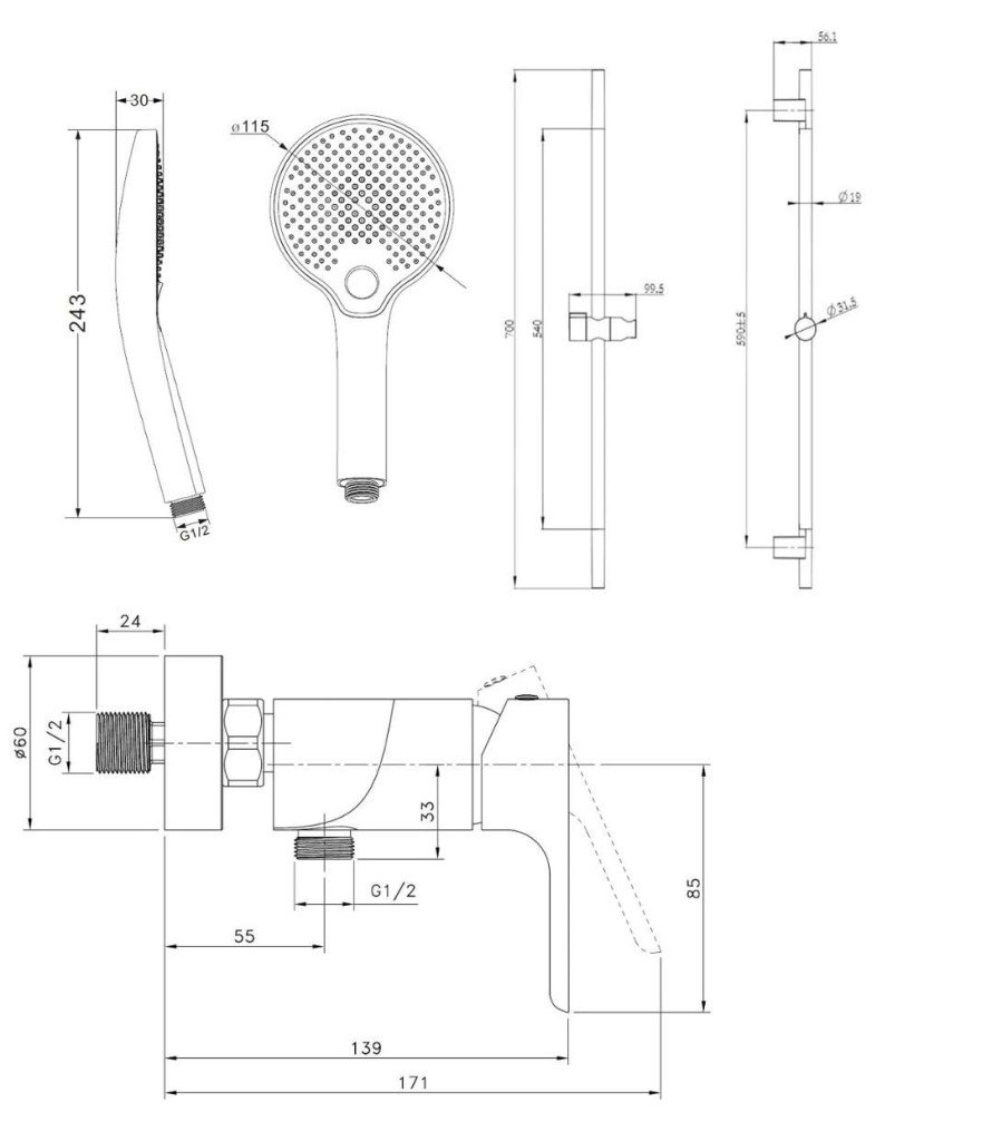 Sprchový set obsahuje