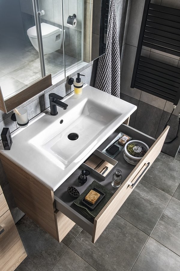 Série VEGA jsou skříňky v provedení lesklé bílé a dub platin s praktickými velkými zásuvkami. Umyvadlové skříňky lze doplnit o VEGA desku pod umyvadlo v dekoru dub platin. Koupelnový nábytek VEGA je moderní a vzhledově čistý nábytek za příznivou cenu.