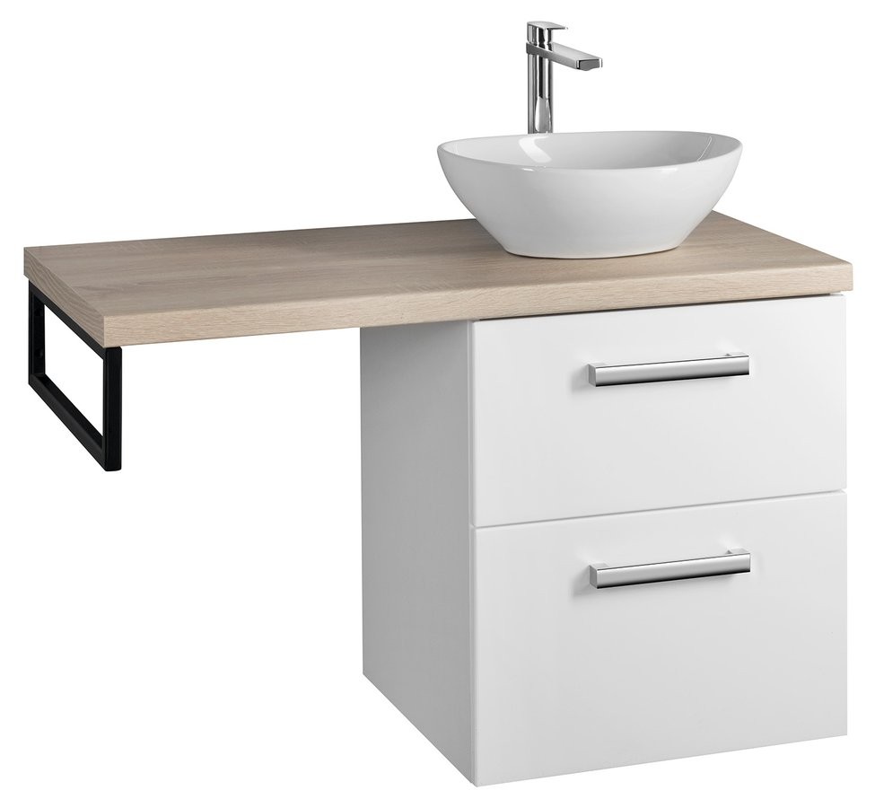 Koupelnový nábytek VEGA s deskou VEGA (HPL) v dekoru dub platin lze kombinovat s umyvadly na postavení.