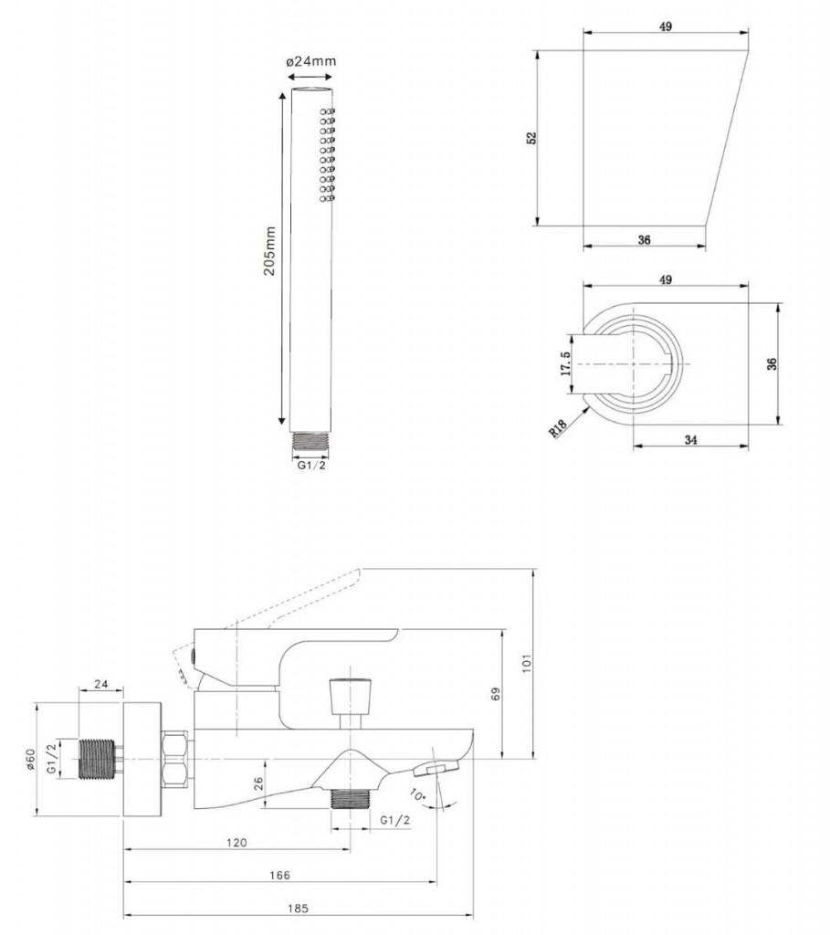 ruční sprchu, 1 proud