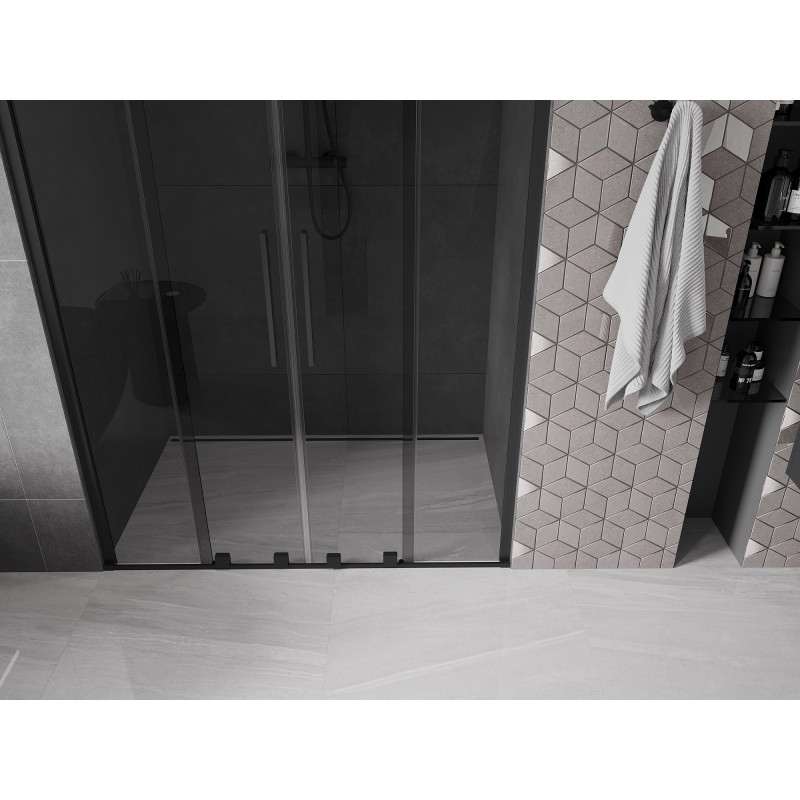 V nabídce jsou sprchové zástěny VELAR DUO od šířky 140 až do 200 cm a v různých barevných variantách skla jako je klasické čiré, dekorované nebo grafit.