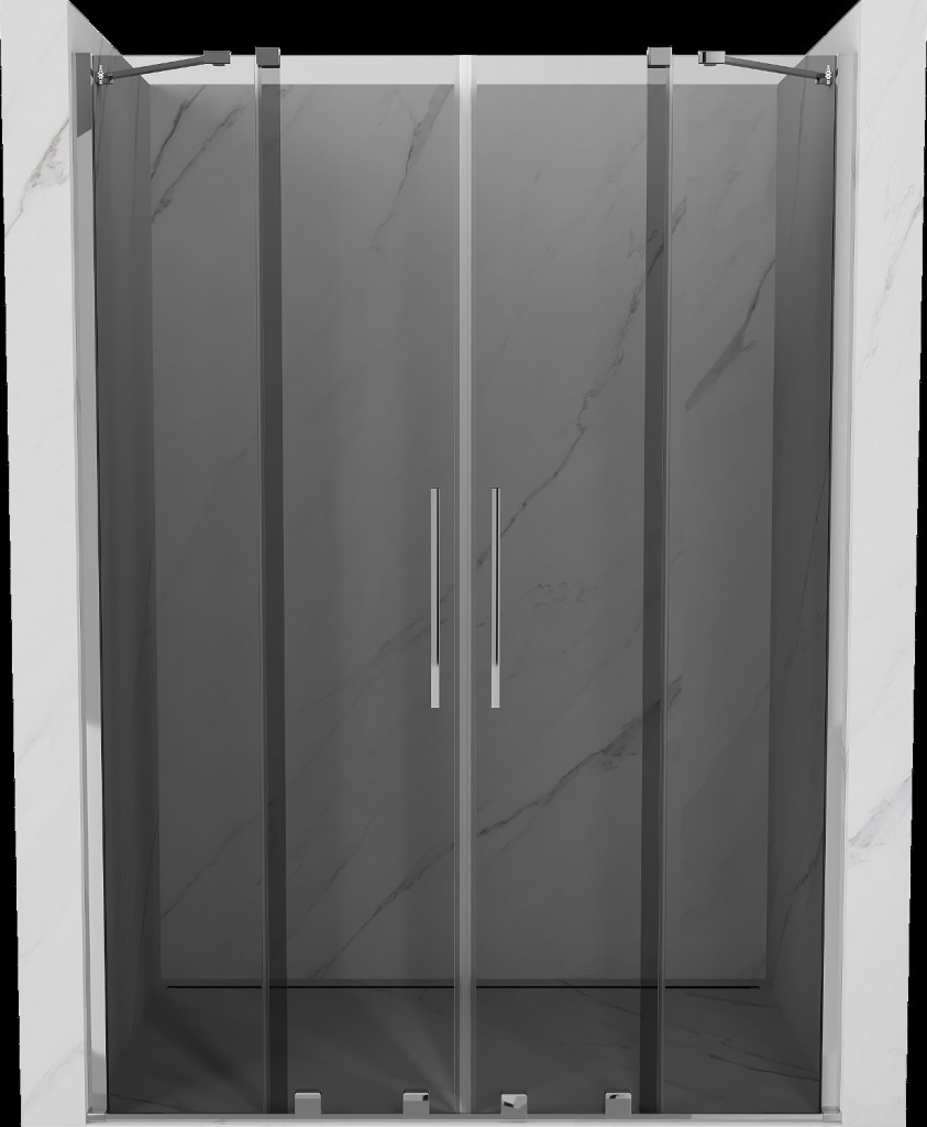 V nabídce jsou sprchové zástěny VELAR DUO od šířky 140 až do 200 cm a v různých barevných variantách skla jako je klasické čiré, dekorované nebo grafit.