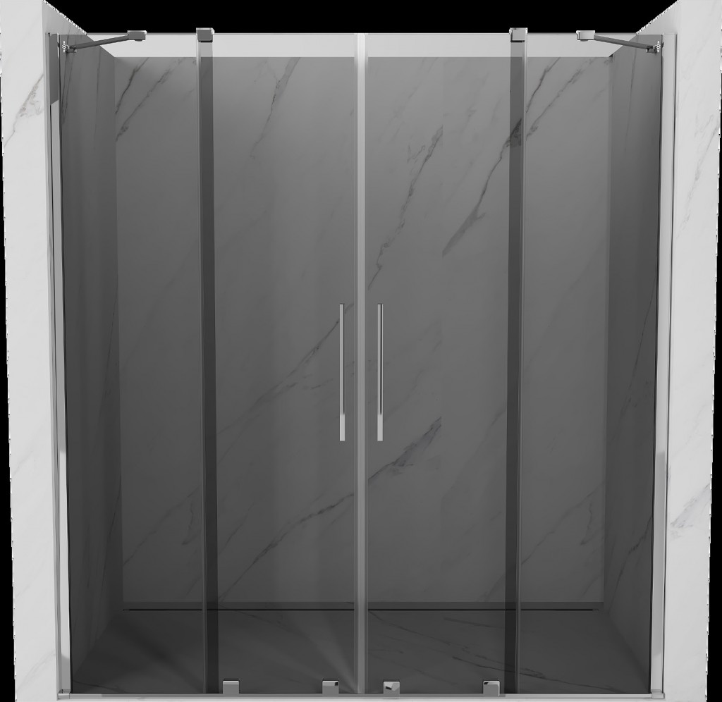 V nabídce jsou sprchové zástěny VELAR DUO od šířky 140 až do 200 cm a v různých barevných variantách skla jako je klasické čiré, dekorované nebo grafit.