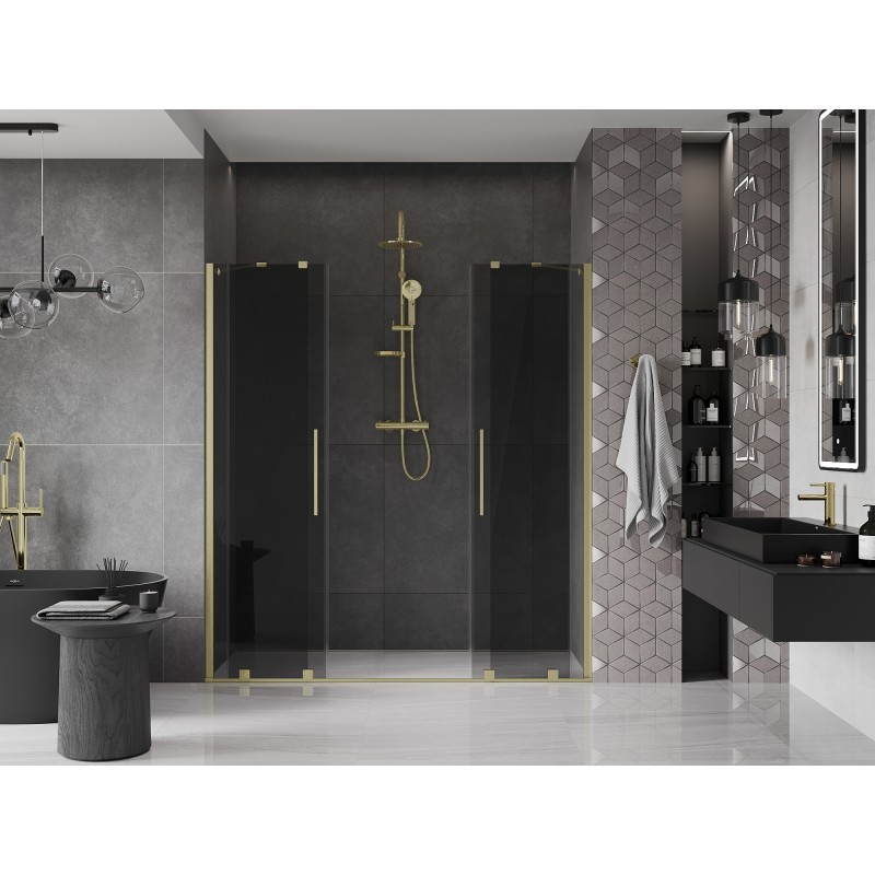 V nabídce jsou sprchové zástěny VELAR DUO od šířky 140 až do 200 cm a v různých barevných variantách skla jako je klasické čiré, dekorované nebo grafit.