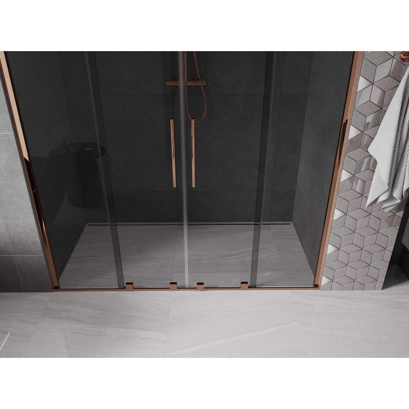 V nabídce jsou sprchové zástěny VELAR DUO od šířky 140 až do 200 cm a v různých barevných variantách skla jako je klasické čiré, dekorované nebo grafit.