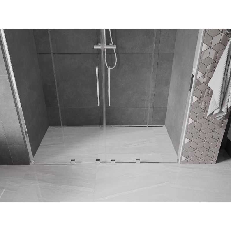 Funkční, posuvná sprchová zástěna VELAR L DUO se skládá ze dvou sprchových dveří se spolehlivými válečky, které zaručují plynulé a tiché posouvání. Je vyrobena z tvrzených skel o síle 8 mm a výšce 200 cm. Instaluje se do niky /mezi dvě stěny/ pomocí hliníkových, nástěnných profilů s možností vyrovnání nerovností stěn, spodní hliníkové lišty a je ukotvena stabilizačními vzpěrami z nerezové oceli tvaru "L".