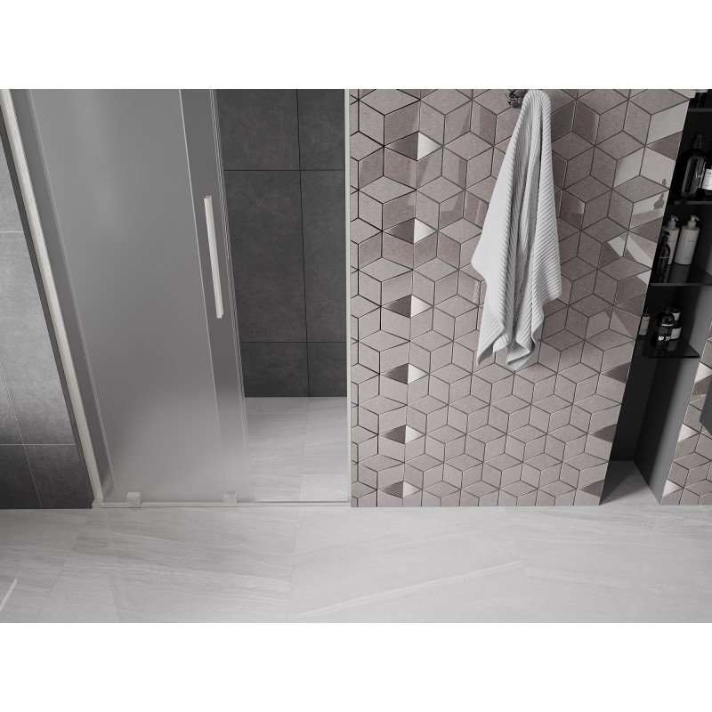 Sprchové dveře WALK-IN s nerezovým ocelovým madlem výšky 200 cm s univerzální montáží (pravá/ levá) z kolekce Mexen VELAR L. Funkční posuvné dveře se spolehlivými válečky, které zaručují plynulé a tiché posouvání. Ochranná nano technologie Easy Clean na tvrzeném skle o síle 8 mm usnadňuje jejich čištění, takže si můžete déle užívat dokonale průhledné a lesklé sklo. I přesto doporučujeme používat stěrku, která zamezí usychání kapiček na skle a vzniku nevzhledného matného povrchu.