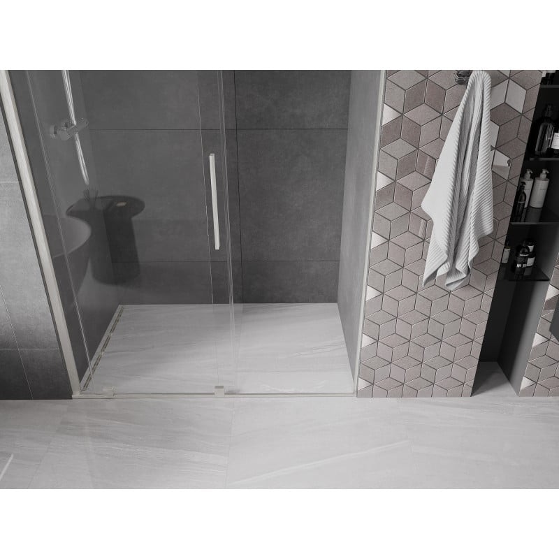 Sprchové dveře s nerezovým ocelovým madlem výšky 200 cm s univerzální montáží (pravá/ levá) z kolekce Mexen VELAR. Funkční posuvné dveře se spolehlivými válečky, které zaručují plynulé a tiché posouvání. Ochranná nano technologie Easy Clean na tvrzeném skle o síle 8mm usnadňuje jejich čištění, takže si můžete déle užívat dokonale průhledné a lesklé sklo. I přesto doporučujeme používat stěrku, která zamezí usychání kapiček na skle a vzniku nevzhledného matného povrchu. Vzpěra sprchových dveří je vyrobena z nerezové oceli o maximální délce 150 cm s možností zkrácení na vámi zvolený rozměr.