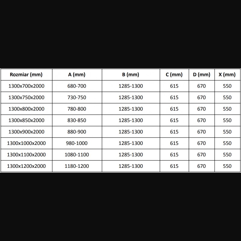 Rozměr: 130x75 cm (dveře 130 cm, stěna 75 cm)