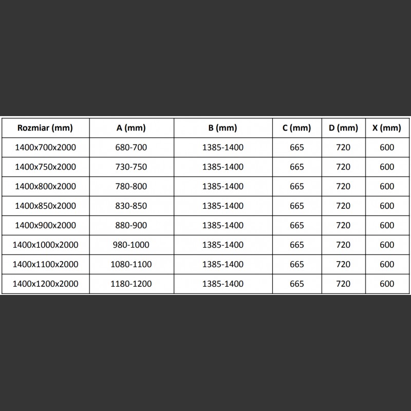 Rozměr: 140x90 cm (dveře 140 cm, stěna 90 cm)