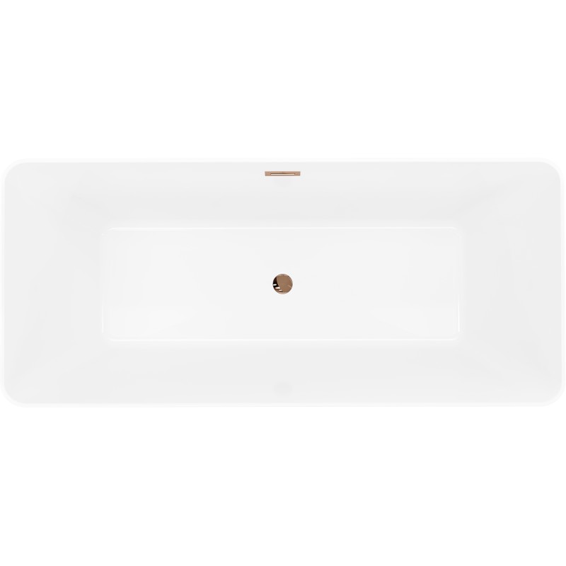 Specifikace produktu: Rozměry: 170 x 75 cm Výška: 58 cm Hloubka: 45 cm Instalace: Volně stojící Materiál: Sanitární akrylát Barva: Bílá/Černá Povrchová úprava: Růžové zlato Otvor pro přepad: Ano Otvor pro baterii: Ne Sifon a zátka click-clack jsou součástí balení Odolné vůči baterii a UV záření