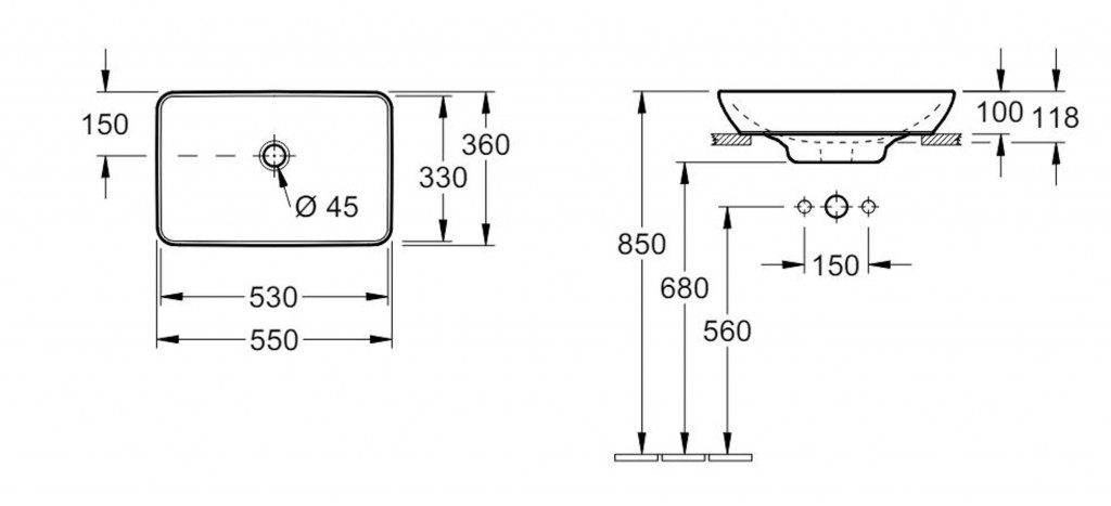 - doporučená montáž s minimální vzdáleností mezi zadní stěnou umyvadla a stěnou: 50 mm